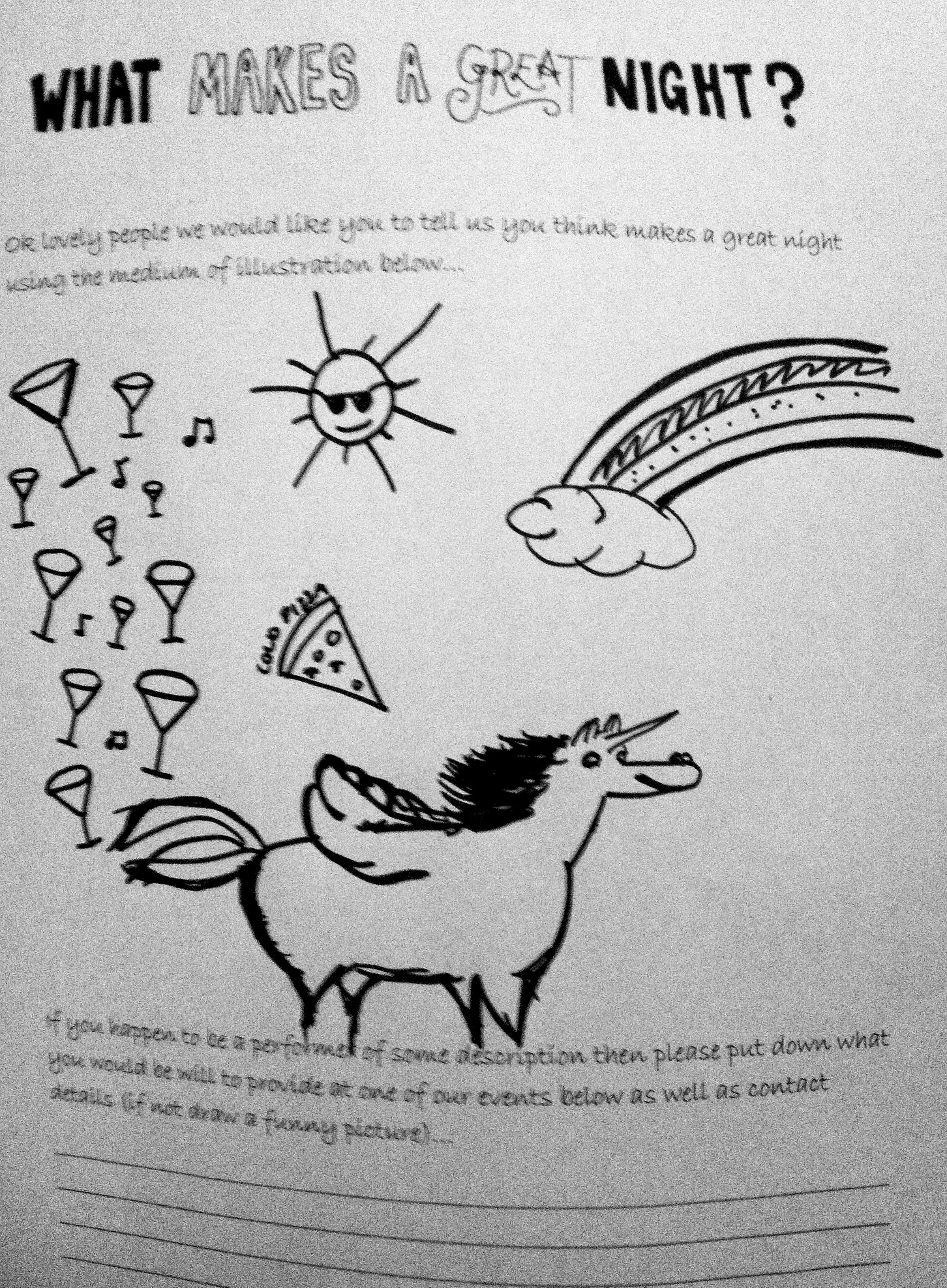 Thanks Rhodora, I also think Flying Martinis, Sunshine, Cold Pizza, a Rainbow and a Unicorn makes a pretty good night out too.